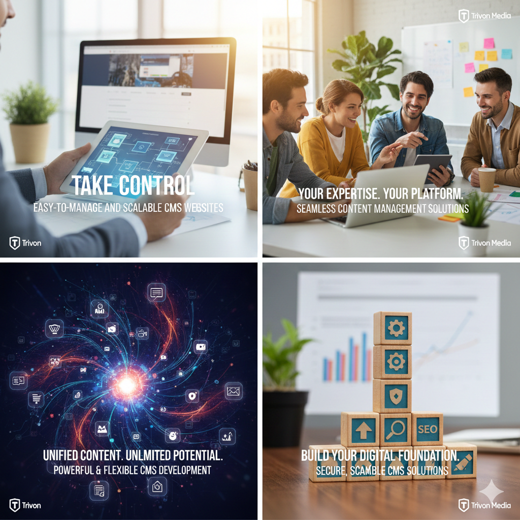 A Content Management System (CMS) website gives you the freedom to update and manage your content instantly, without needing a developer for every small change. Trivon Media specializes in creating powerful, secure, and user-friendly CMS solutions tailored precisely to your operational needs.